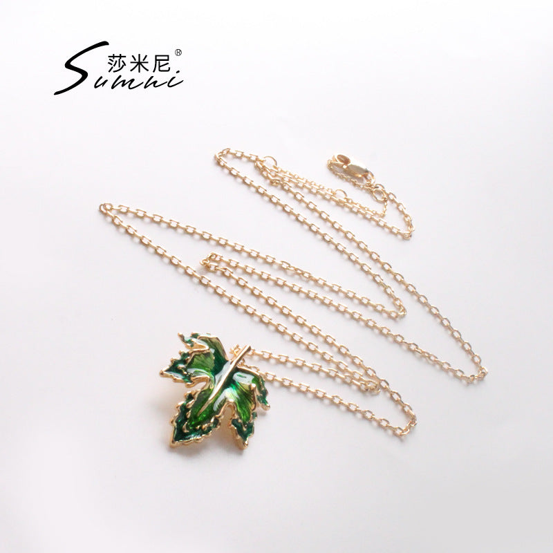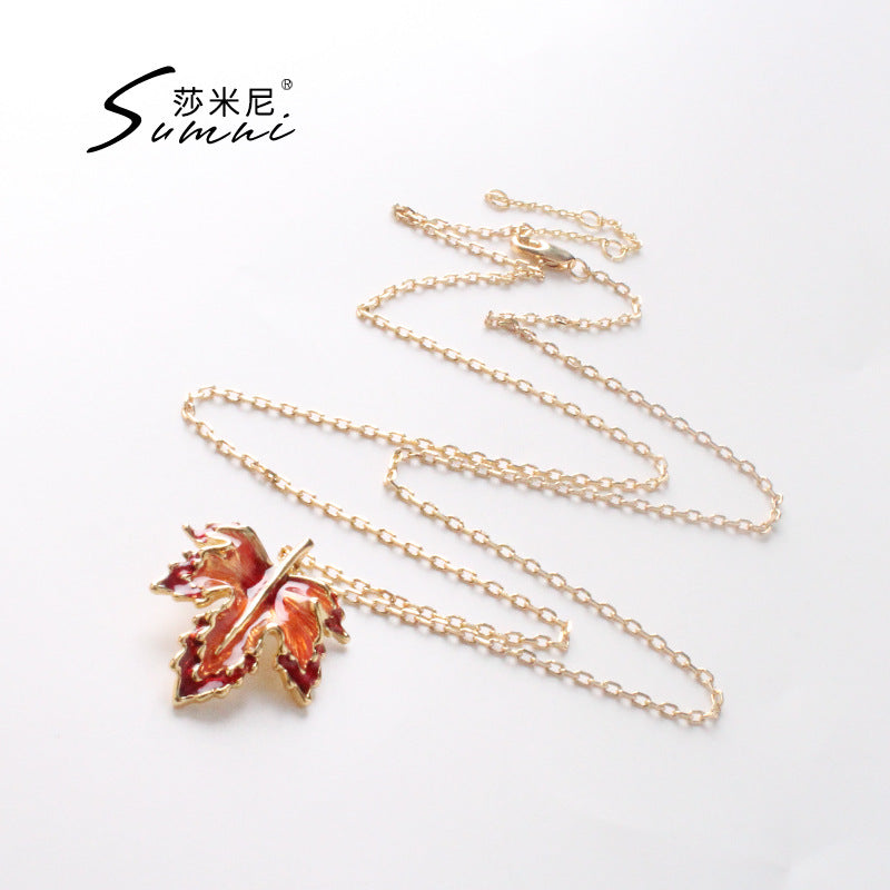 Lange Halskette mit Ahornblatt-Emaille und Tropfglasur für Damen